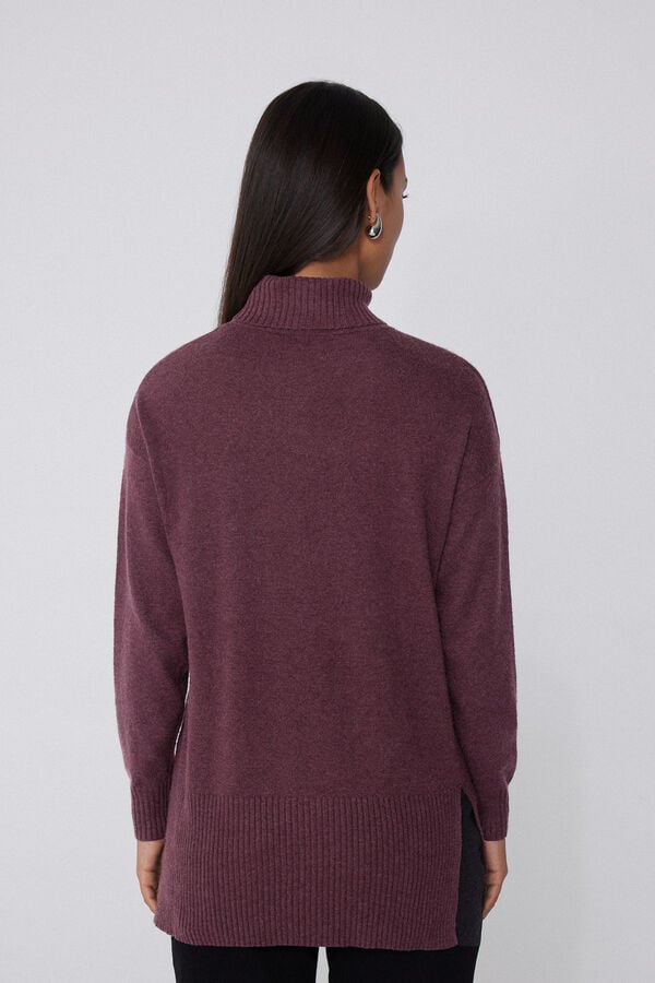 Long top with polo neck, long sleeves and side slits, styled in warm fabric with wool.