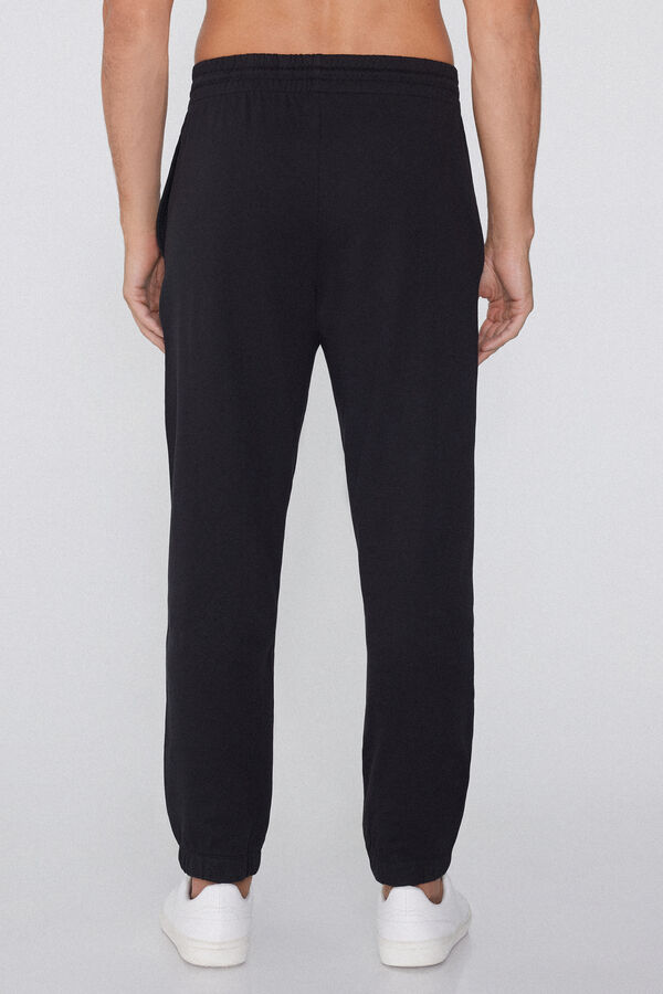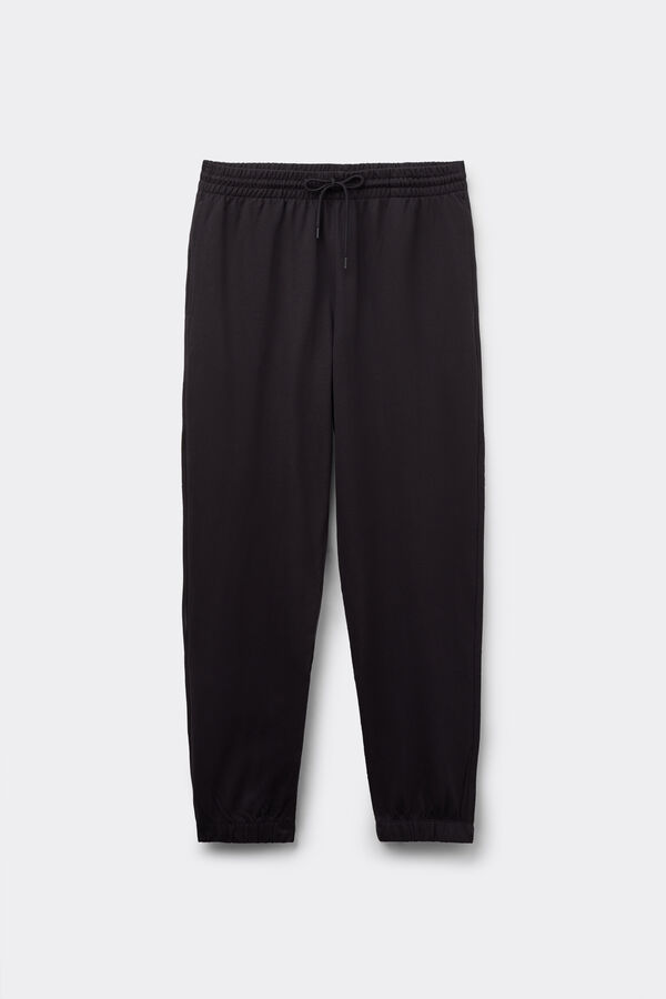 Pantalon long en molleton de coton resserré à la cheville, avec poches latérales et lacet à la taille.