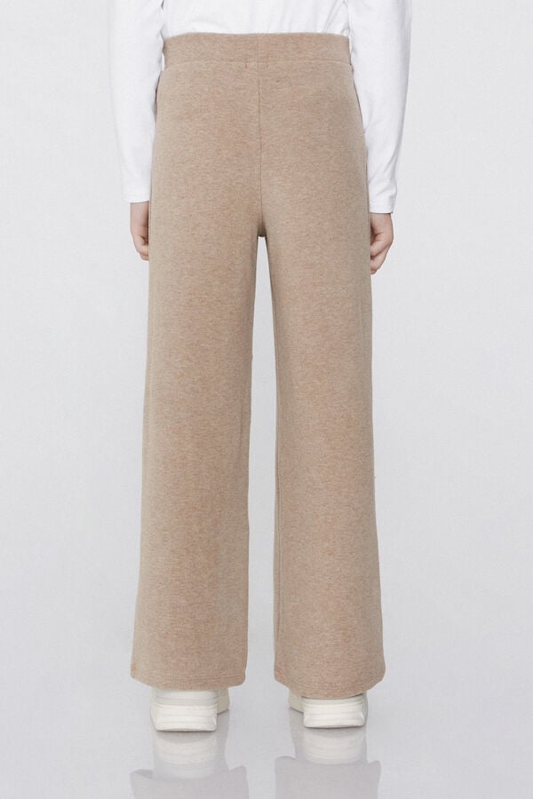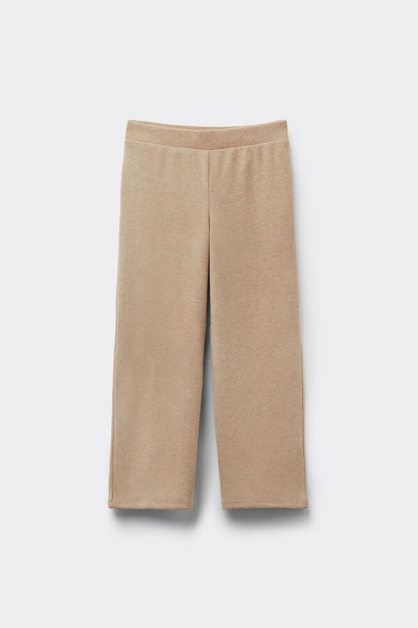 Pantaloni lunghi a palazzo, realizzati in tessuto morbido e caldo. Vestibilità ampia.
