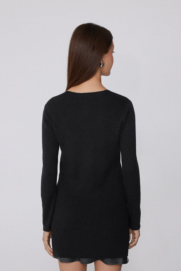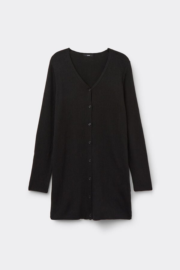 - > Long Thick Ribbed V-Neck Cardigan With Wool