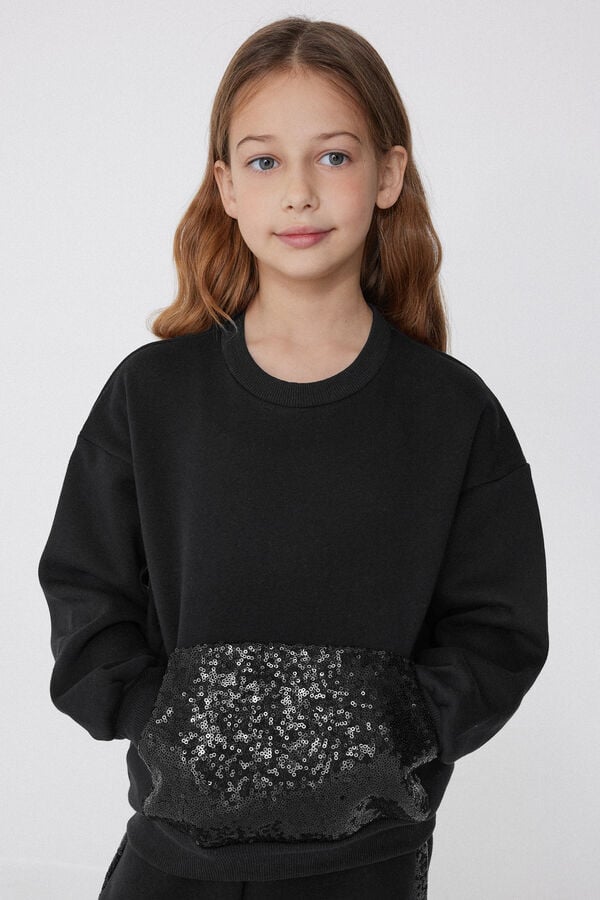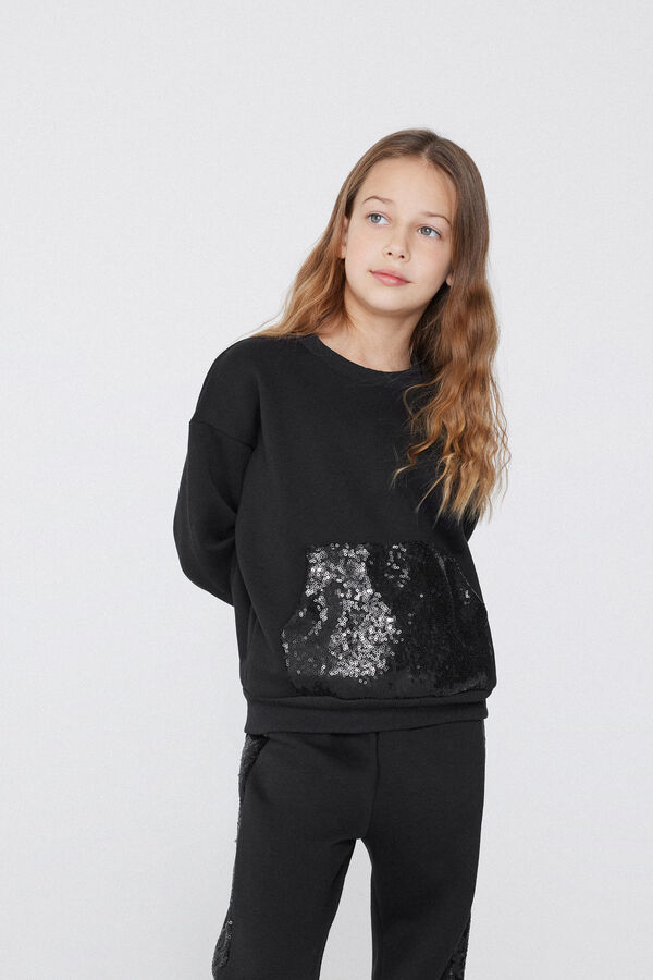 Medium-weight sweatshirt with long sleeves, rounded neck and sequin pocket.