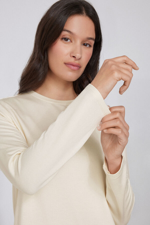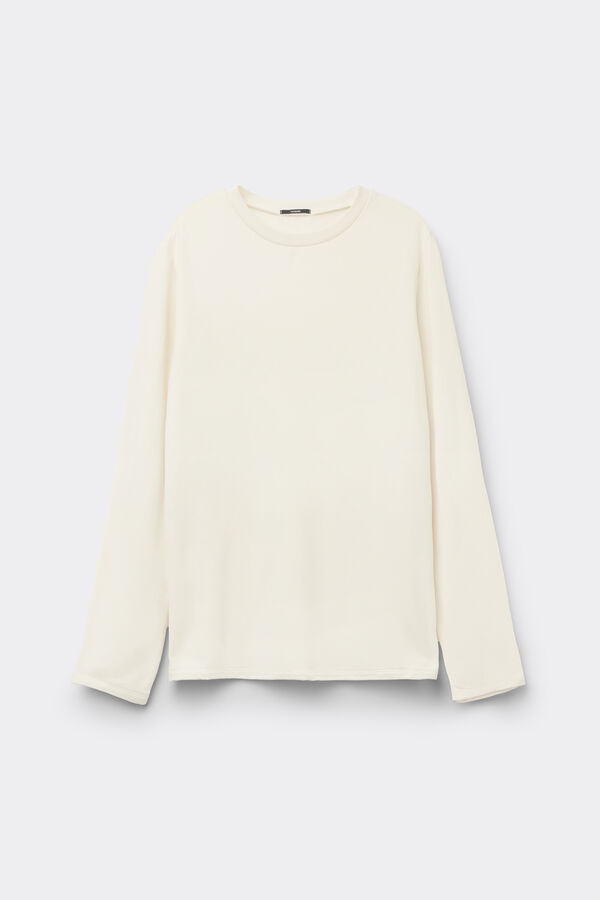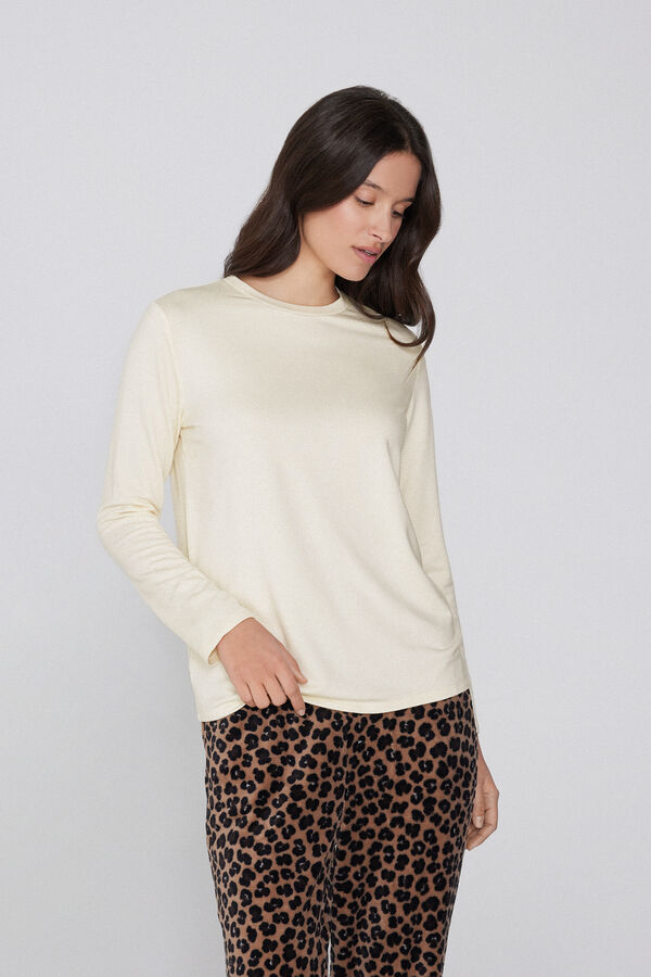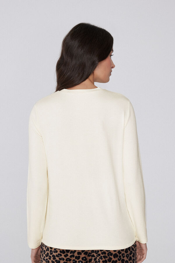 - > Μακρυμάνικη Χνουδωτή Μπλούζα Στρογγυλή Λαιμόκοψη από Βισκόζη