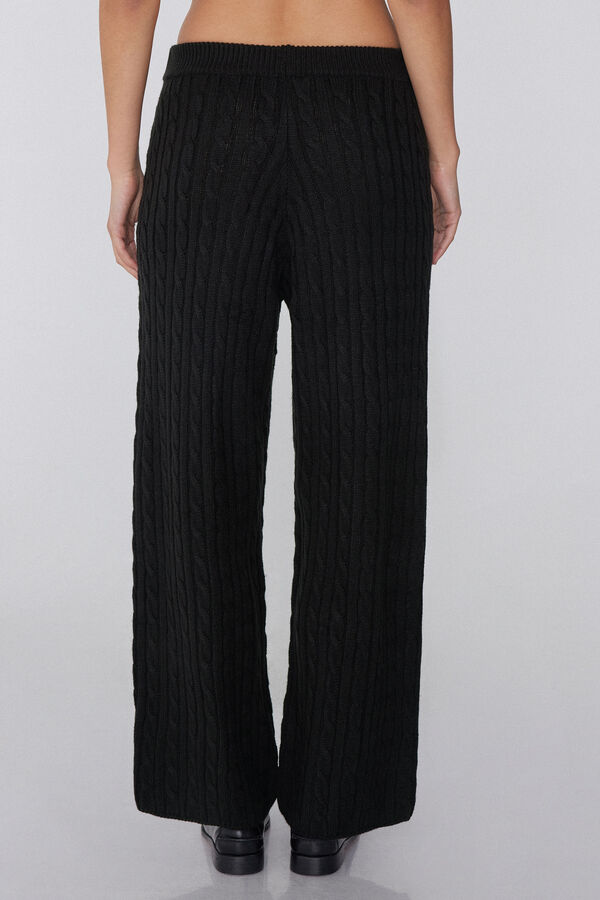 Pantaloni lunghi a palazzo, con lavorazione a trecce ed elastico in vita. Vestibilità ampia.