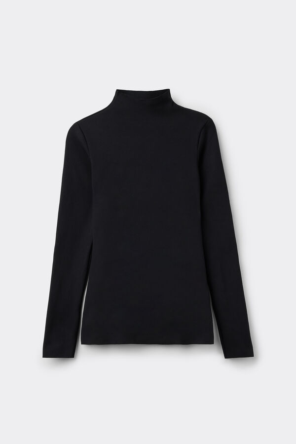 Maglia a manica lunga con collo a lupetto, realizzata in tessuto estremamente morbido e caldo al tatto, ideale come primo strato per affrontare le stagioni più fredde, mantenendo il corpo al caldo senza rinunciare alla leggerezza e alla vestibilità. Le rifiniture a taglio vivo donano al capo un look pulito e moderno, rendendolo adatto anche per un uso quotidiano o come sottogiacca raffinato. Vestibilità aderente.