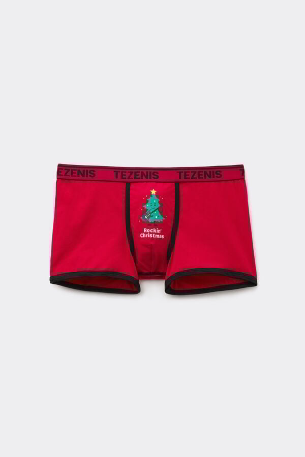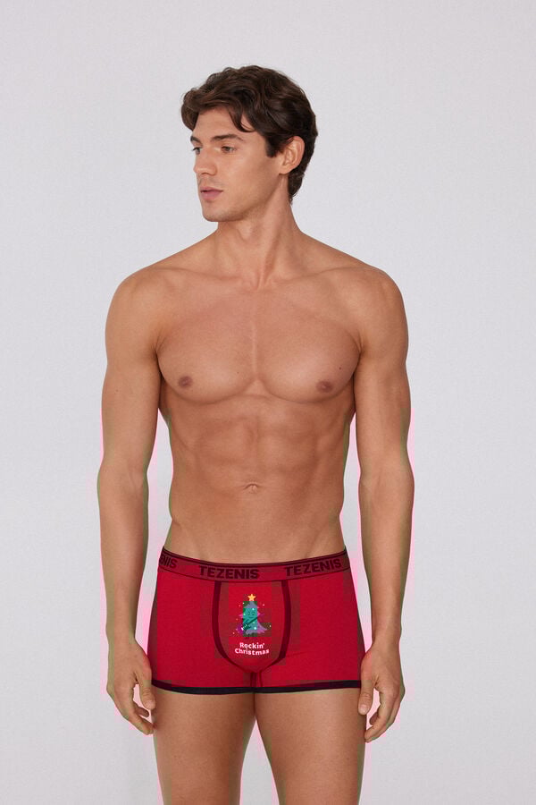 Strečové bavlnené boxerky s elastickým logom a vianočnou potlačou.